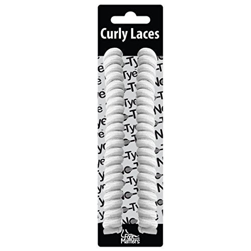 • FootMatters Curly No Tye Neon Shoe Laces - Elastic Spring Shoe Laces - No Tie Great for Elderly, Children, Fashion - One Size Fits All - White - 2 pairs