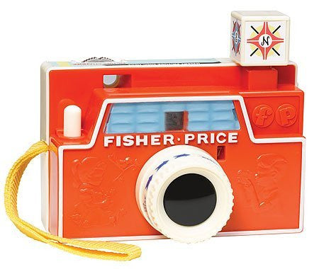 Fisher Price Toys- The iconic Changeable Disk Camera, originally introduced in 1968, is back for a new generation of children to enjoy. This adorable camera features interhangeable picture disks that are advanced by pressing the "shutter" button. Other features include a take along strap for the aspiring photographer on the go and a rotating flash cube. Comes complete with 3 picture disks featuring Nursery Rhymes, Goldilocks and the Three Bears, and animals and their babies.