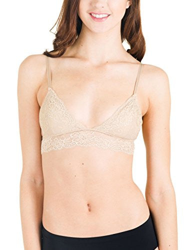 • Full Lace Triangle Bralette with Hook Clasp - Beige, Medium/Large