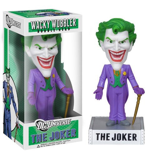 Batman's arch-nemesis, Joker, is simply stunning in purple. The 7-inch tall bobble head of Joker features the clown prince of crime with a wide mouthed smile as he stands with his trusty cane in his left hand! Quit joking around and pick up the Joker today! Measures 7-inches tall including the base. Ages 5 and up.