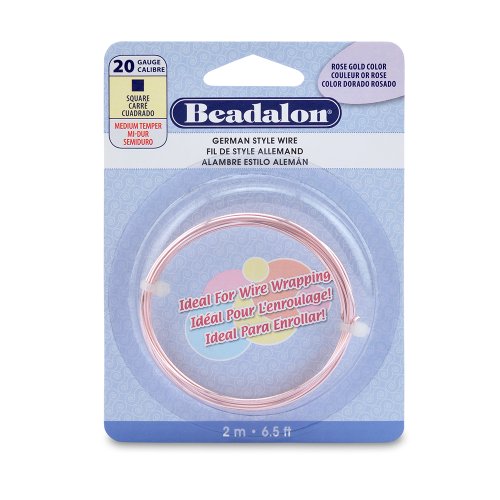 German Style Wire, Square, Silver Plated Rose Gold Color, 20 gauge (.032 in, .81 mm), 2 m (6.5 ft)