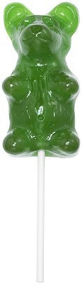 Equivalent to 88 gummy bears (those baby bears), this beary big, half-pound gummy lollipop is more fun than a barrel of monkeys. Possibly too cute to eat, it will satisfy a gummy-tooth for a long, long time. Made in the USA.