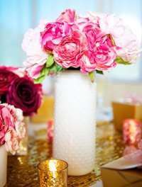 Adorable white glass hobnail jar with pattern. Fill jar with colored gems or stones and add a few flower sprays for a simple but beautiful centerpiece arrangement.