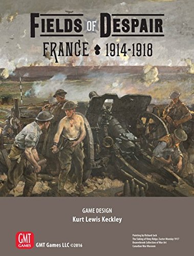 Fields of Despair: France 1914-1918 is a 2-player hex-based strategic level block war game set on the Western Front of the First World War. Players take control of the Allies or Central Powers fighting the war on land, at sea, and in the air all the while making tough economic and technological decisions at home. Fields of Despair has a unique block system designed to maintain the fog of war throughout the entire game. In most games, block combat values range from one to four. In Fields of Despair the range is zero to twenty. The range in values makes Fields of Despair a very deceptive game. Players can build up a large force with a single block instead of giving away their strategy with a stack of blocks. Movement is simple and free flowing. Players are allowed to "make change" during the movement phase. Thus a block with a combat value of 16 could be broken in two blocks of 8 before moving, or conversely two blocks could be combined into one. Zero-value blocks known as "Deception" blocks could also be part of the exchange. Thus after every movement phase you never really know the strength of your enemy. The fog of war isn't lost after first contact with the enemy. Blocks remain hidden even when enemies occupy the same hex and stay hidden until one player decides to allocate an air squadron for reconnaissance or sends his men across no man's land.
