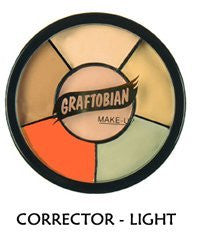 Available in both a Light and a Dark skin tone wheel, these shades are formulated with our theatrical base--more intense pigmentation than found in our HD Glamour Creme Corrector Palette, which shares 5 of 6 of the Light Wheel shades. This strength of coverage handles extreme discoloration situations as well as tattoo coverage!
