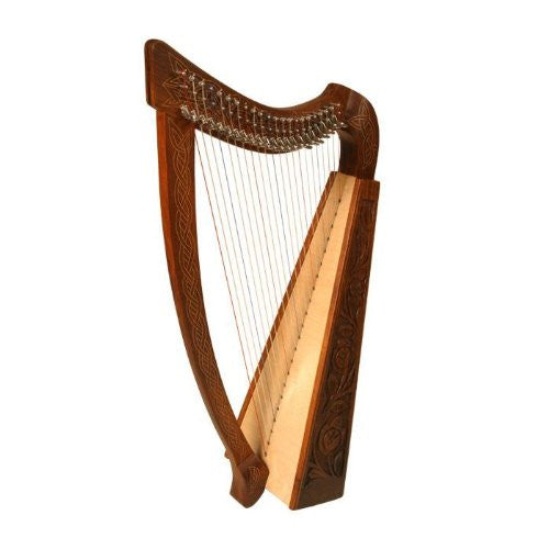The Heather HarpT has 22 DuPont hard nylon strings that range from C3 to C6, and it has 22 sharpening levers. It is approximately 36" high. It has an engraved and inlaid rosewood frame with a birch soundboard for exceptional sound and strength. It includes a tuning tool and one extra string set. The color of the wood may be a little different than the photo.