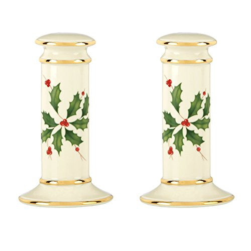 Add a classic touch to your table with these fine china shakers designed after treasures in the Lenox archives. Both are decorated with our popular Holiday motif and accented with gold. Height: 4" Makes a great hostess gift.