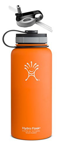 Hydro Flask Insulated Wide Mouth Stainless Steel 32-Ounce Water Bottle,32 oz,Orange Zest w/Straw Lid