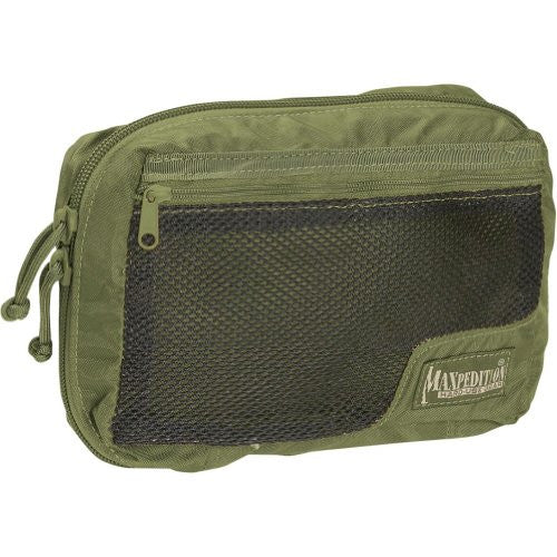 Product Details Product Features  Lightweight individual soldier combat first aid kit pouch  420-Denier nylon for weight reduction and increased mobility  Also excellent for organizing computer cables or toiletries  Overall size: 8 wide x 5 high x 2.5 thick  Clamshell opening main compartment  Internal mesh and see-thru plastic organizers  External zippered mesh pocket  Integral carry handle  MOLLE compatible  Attachment method: 3 TacTie Attachment Straps (sold separately)  First aid supplies not included Product Materials  420-Denier water and abrasion resistant light-weight ballistic nylon fabric  Teflon fabric protector for grime resistance and easy maintenance  high strength zippers and zipper tracks  High tensile strength nylon webbing  High tensile strength composite nylon thread (stronger than ordinary industry standard nylon thread)  Internal seams taped and finished  Paracord zipper pulls  Stress points double stitched, Bar tacked or -Inch Box-and-X-Inch stitched for added strength Cleaning Instructions  MAXPEDITION's nylon fabric is treated with Dupont Teflon for superb water and grime resistance.  To clean, simply wipe down with a damp cloth. Allow gear to dry naturally.  Do not machine wash.  Do not use detergent or bleach.