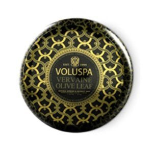 Fragrance: Vervaine (Verbena), Olive Leaves, and Rosewood. Voluspa's Maison Noir Vervaine Olive Leaf 2-Wick Candle in Tin is filled with superior quality, cool burning wax that will burn for over 50 hours, leaving your room scented with French Lemon Vervaine (Verbena) and crush Olive Leaves combined with a heart of Rosewood. 11 oz.