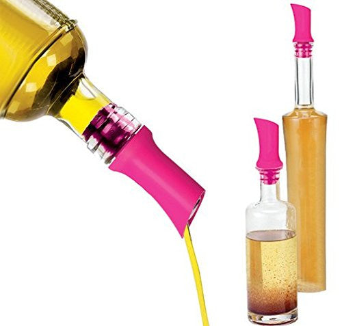 Self Sealing Pour spout features a self-sealing mechanism which keeps your oil vinegar or any liquid fresh and sealed while standing upright yet pours smoothly and easily when tilted. Universal ribs allow spout to fit most store bought and decorative bottles.