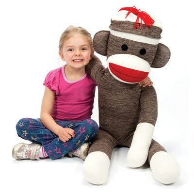 Jumbo Sock Monkey on the loose! Measures 3 feet 9 inches tall! Great addition to a Sock Monkey themed bedroom!