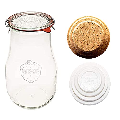 ¾ L Mold Jar, w/ glass lid, ring & 2 clamps, 28.7oz; Large Cork Lid; Large Keep-Fresh Covers