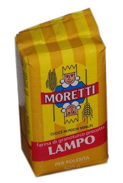 In the Lombardia region, the Moretti family has been attentively growing corn and making choice polenta since 1922. Carefully selected varieties of corn are air-dried in open barns until hardened. The kernels are carefully stone ground and vacuum-packed to retain the cornmeal's natural freshness and flavor. LAMPO | quick cooking | Only takes 5 minutes to cook which makes this polenta - especially useful for kid's meals, breakfast cereal, or as an impromptu evening meal.