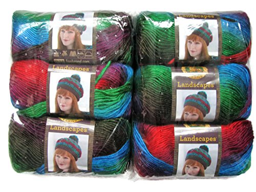 The self-striping nature of Landscapes creates beautiful, saturated bands of color similar to that of the horizon sunset. Landscapes is a premium acrylic, single plied roving yarn that has a satiny feel and a richly colored palette. With its beautiful color ways, you can create stunning garments and accessories that make simple stitches look like art; The self-striping nature of Landscapes creates beautiful, saturated bands of color similar to that of the horizon sunset; 100% acrylic; Items may be laundered with hottest available water, detergent or soap, agitation. Lay horizontally for drying; Weight Category: 4; 3.50 oz./100 g (147 yd/134 m); Each skein of yarn is approximately 7 by 3 by 3 Inch. 4"=16.5 stitches on size 10 needles. Suggested crochet hook: K10.5. Dyelotted.