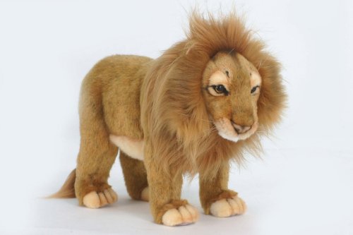 HANSA - Standing Male Lion Plush Toy - This Hansa Standing Male Lion is part of the Hansa Safari Animals Collection. The Male Lion's approximate dimensions are 14.57 L x 5.51 W x 7.87 H. Suitable for ages 3 years old and up. When you hold these wonderfully ''life-like'' animals, you will see and feel HANSA's emphasis on quality, which is a result of careful attention to design, custom fabric selection, cutting, sewing, stuffing, eye placement, feature creation, framing, air brushing and finishing. Since each animal is hand sewn, there will be slight variations in appearance. WARNING: CHOKING HAZARD -- Small parts. Not for children under 3 yrs.