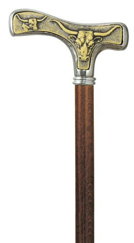 In a rich blend of silverplate and faux ivory, our Longhorn walking stick deftly elicit the spirit of the American West. Carved in basso-rilievo, or low relief, the animals come to life with amazing attention to detail, framed in substantial silver plating. Measures 36-1/2 inches in length.