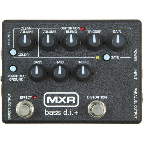 The MXR Bass D.I.+ is a bass player's secret weapon. This compact unit is a preamp, DI box, and distortion pedal. Two channels, Clean and Distortion, give you tons of tonal flexibility and distortion flavors. From classic rock overdrives to all-out metal distortion you'll be ready for any rock gig. The Clean channel gives you the full low-end sounds you expect and need from a bass preamp. slew of outputs ensures connectivity for any application. The XLR output is perfect for running to live boards and for studio sessions. The Bass D.I.+ can be powered by a 9v battery, an optional adapter, or phantom power right from a mixer. If you need a compact preamp/DI, the MXR Bass D.I.+ is the all-in-one unit for you.