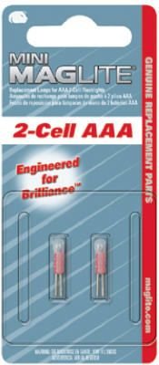 Genuine replacement part. Incandescent replacement lamp for use with all 2 battery Mini Maglite "AAA" incandescent flashlights. 2 pack Mini Maglite Krypton Bi-Pin style lamp Genuine Incandescent replacement lamp Use with all 2 battery Mini Maglite "AAA" incandescent flashlights.