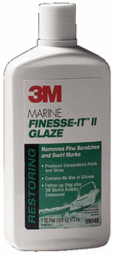 MARINE FINESSE-IT II GLAZE MATERIAL polish is designed to remove minor scratches and light oxidation while producing a high-gloss "wet look" finish on fiberglass and painted boats. Product contains no wax or silicone. It is also the recommended step after using 3M Marine super duty rubbing compound.For best results,use by machine.
