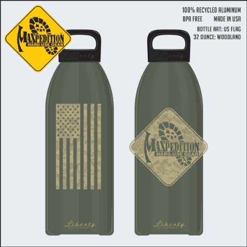 MAXPEDITION 32oz Water Bottle "FLAG" (Woodland)