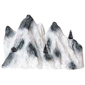 Medium ski mountain backdrop with 3 assorted bristle trees. Cut to fit.