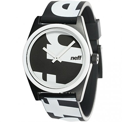 Neff Headwear is a snow/skate/surf headwear company specializing in accessories such as beanies, hats, tees, gloves, glasses and watches. Neff was launched back in 2002 by Shaun Neff in Southern California. Growing up in California, surrounded by the skate, surf and snow culture, Shaun always had an aspiration to be part of the active sports industry. Originally starting out as a clothing company, Shaun made shirts and sold Neff product out of his backpack. Later that year, Shaun moved to Utah to attend Brigham Young University, where he soon realized that in order to get snow and skate pros in on the Neff movement, his company would have to focus on headwear to avoid conflict with athlete clothing agreements. NEFF HEADWEAR was born, being the first authentic core surf, skate and snow headwear company in the industry. That's the genius behind Neff, which has spread globally under a unique niche of headwear.Today, Neff is supported by some of the biggest snowboarders, skateboarders and surfers in the world, as well as key personalities across the globe. Neff is currently located in Camarillo, California and has emerged as the leader in the youth accessory and apparel market. Neff is sold in over 40 countries and can be found in over 2000 stores across the United States. Neff is all about offering a fun and unique product to the youth of today. We are like a gumball machine; spitting out endless flavors for the world to consume, stated Shaun Neff when asked to describe Neff Headwear. Neff has expanded its product offering to categories such as watches, eyewear and apparel and the sky is the limit for the NEFF BRAND. Custom designed Neff watch. Case made from protective ABS material. Polyurethane adjustable strap. Water resistant to 165 Feet. Neff logo on display. Imported.