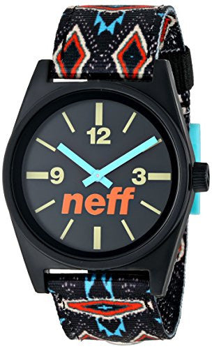 Online Exclusive! Multi color watch with Neff branding on face. Custom designed watch with ABS case. Nylon strap. Water resistant up to 165 feet.