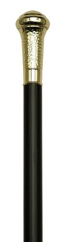 Walking Cane - Gold Men's straight formal cane with 3" high cap, black wood shaft, 36" long with rubber tip. Cap is in gold finish.
