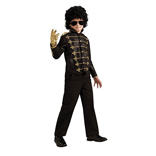 Black military style jacket with gold colored accents. Fits children 12-14.
