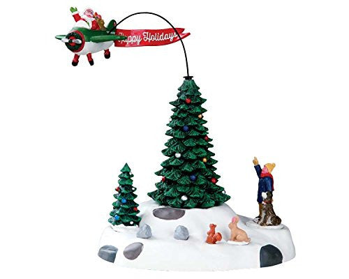 Santa Claus has upgraded his flight technique this year, and instead of tiring out the reindeer he now has a super fast airplane! Santa flies around while a young boy spots him in the air. A once in a lifetime experience! Our wide selection of table Accent pieces can be used to add detail and depth to any Village. Or combine two or more of these fun settings to create a mini-scene of your own!