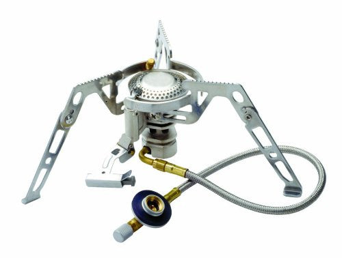 The light weight Moonwalker weighs just 10.3 ounces and folds neatly into a compact carrying case. When used with Kovea's isobutane camping gas, 33 ounces of water (4 cups) will boil in just under 5 minutes. Conveniently equipped with a self igniter and a control knob, the Moonwalker is ready to take on wider and heavier loads. For added safety, gas canisters connect remotely through the attached hose.