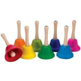 The Musical Hand Bells form Schylling Toys, the world leader in traditional toys and classic fun, will fill the air with the sounds of beautiful music. A set of 8, each beautifully colored bell plays a different note, from Middle C to High C. The bells are color coded and labeled so the budding musician can make beautiful music. Each has a tuned metal bell and a sturdy resin handle. The set comes with music for 8 classic children's songs. This is the perfect musical accompaniment for the aspiring musician. For ages 3+. Fill the air with music! Each of these 8 beautiful colored metal bells has a plastic handle and a different musical tone. Comes with music.