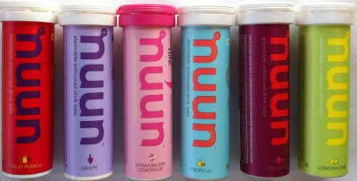 NUUN Multi-Flavor 6 Pack includes 1 tube of each of the following flavors: Lemon Lime, Strawberry Lemonade, Fruit Punch, Grape, Tropical and Tri-Berry