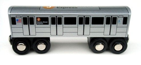 Officially licensed MTA series New York City Subway cars. The J train is a classic IND Express which runs from Jamaica Center in Queens to Broad Street in Manhattan. Compatible with Thomas, Brio, and Plan City track sets.