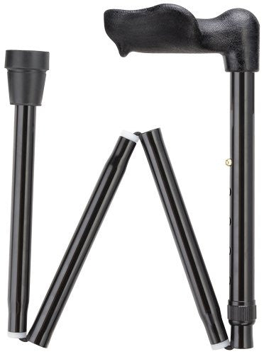 Unisex molded palm grip handle, 3/4" alumunum adjustable folding shaft , adjusts from 33" - 37" with rubber tip. With retaining clip and clear carry case. Specify Right or Left Hand.