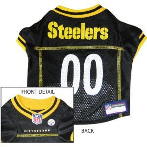 Pittsburgh Steelers Dog Pet Jersey Shirt Officially Licensed NFL Extra Large Size Extra Large XL : Have your dog ready for gameday with the Pittsburgh Steelers Mesh Dog Jersey. Features 100% mesh polyester jersey with screen printed team logo, sewn-on jock tag and contrast trim. Machine wash cold delicate. Line dry. Do not iron.
