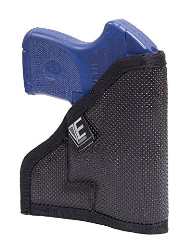 The Elite Pocket Holster is constructed of Toughtek non-slip material with soft nylon lining. Holds firearm in the upright position. Helps protect weapon from pocket debris. Non-slip outer layer helps keep holster in place while gun is removed. Fits Kel-Tec P32, P-3AT; Rugger LCP; Taurus PT22; Diamondback DB380; NAA Guardian 380 and similar.