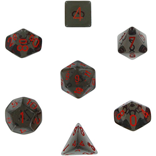 • Polyhedral 7-Die Translucent Dice Set - Smoke with Red