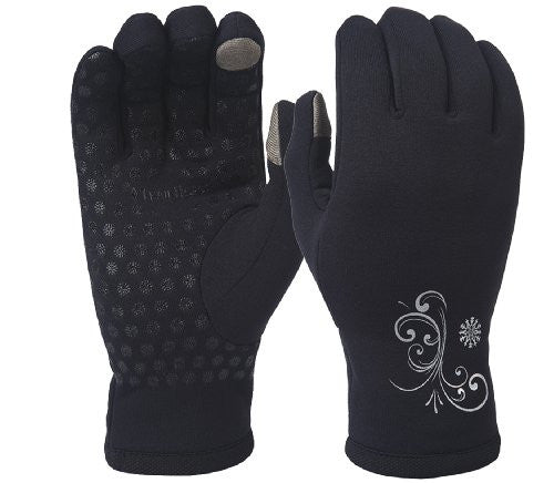 TrailHeads' Power Stretch® Women's Running Gloves combine style and function beautifully. Silicone snowflake-shaped grippers on the palm provide a firm grip for your phone or other handheld devices. The conductive fabric on thumb and forefinger allows you to use your devices without removing your gloves: adjust your play list or track your workout. The stylish swirl design offers a feminine touch to these hard working gloves.