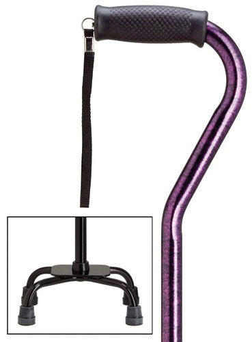 Quad Cane - Purple Granite Large base-7" x 13", with center balance offset handle and nylon security nut. Adjusts from 30" - 39".