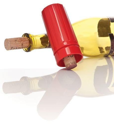 Handy two-piece device to re-insert a cork backinto a wine bottle. Remove top cylinder from unit, place cork inside, replace top cylinder, and push the cork into the bottle. 4-1/8'' high X 1-7/8''diameter