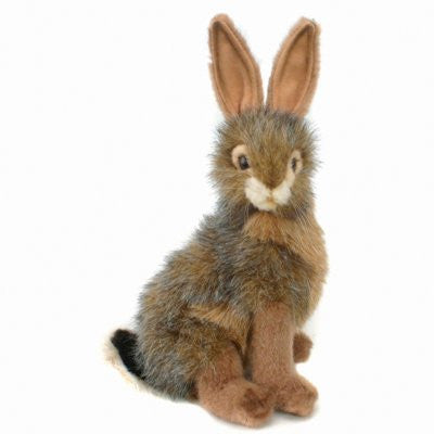 3581 Features: -Bunny rabbit stuffed animal.-Has has brown and gray tuft hair; sitting.-Hand crafted.-Reproduced key animal features for life like quality.-Meticulously manufactured from the finest soft plush materials.