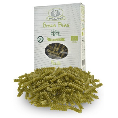 Rustichella d'Abruzzo Pasta, Organic Gluten Free in Box, Green Pea Fusilli, 250 gr/8.8 oz
