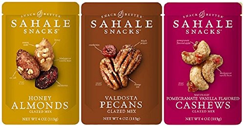 Sahale Nut Blends Standard Pouches - 4oz, 3 Pack Includes: 1 Almond Honey, 1 Valdosta Pecans, and 1 Cashew Pomegranate