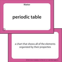 Students work at their own pace as they master essential science terminology! Plants, animals, humans, Earth, living things and their environments, Earths atmosphere and moon, space, matter, energy, light and electricity. UV-coated cards with rounded corners for durability Color-coded borders to easily identify topics Predrilled holes for convenient storage on included sort-and-store rings (two rings per set) Reproducible vocabulary chart 2½" x 4" cards Set of 130 Grades: 5 - 6 Manufacturer: Edupress