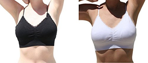 Seamless Lace Trim V-Neck Bra Top - Black and Seamless Lace Trin V-Neck Bra Top - White, One Size (Pack of 2)