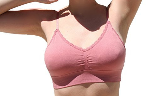 Seamless Lace Trim V-Neck Bra Top - Dusty Rose, One Size