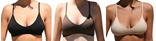 Seamless Plunging V-Neck Sport Bra - Black and Seamless Plunging V-Neck Sport Bra - Beige and Seamless Plunging V-Neck Sport Bra - Dark Brown, One Size (Pack of 3)