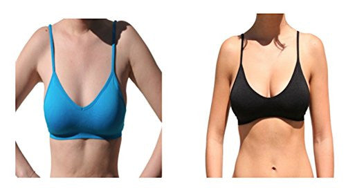 • Seamless Plunging V-Neck Sport Bra - Black and Seamless Plunging V-Neck Sport Bra - Turquoise, One Size (Pack of 2)